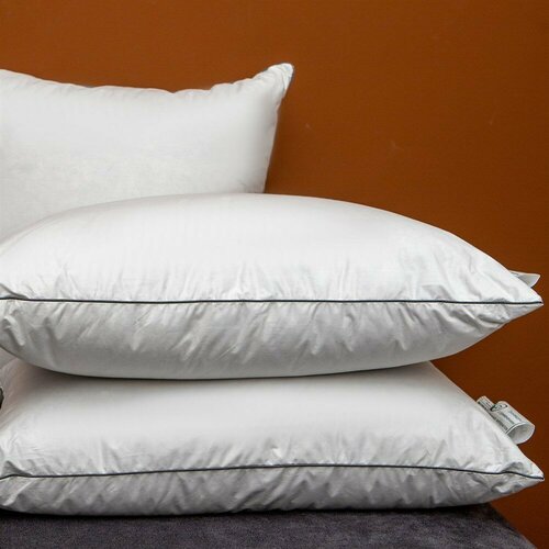 Наполнитель: Внешний слой – натуральный гусиный пух категории Экстра (смесь пуха серого и белого цвета), внутренняя кассета (для создания в подушке необходимой высоты и упругости) – мелкое перышко. Ткань чехла: 100% хлопок — мерсеризованный тик полотняного переплетения из длинноволокнистого хлопка, обеспечивающего отсутствие ворсистости и однородность ткани. Высокая плотность: 206/155 нитей на 10 см²,135 г/м². Цвет белый, кант — графитового цвета.