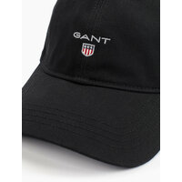 Бейсболка GANT черного цвета, выполнена из 100% плотного хлопка. Кепка универсального размера, с регулируемой металлической застёжкой и люверсами для проветривания.