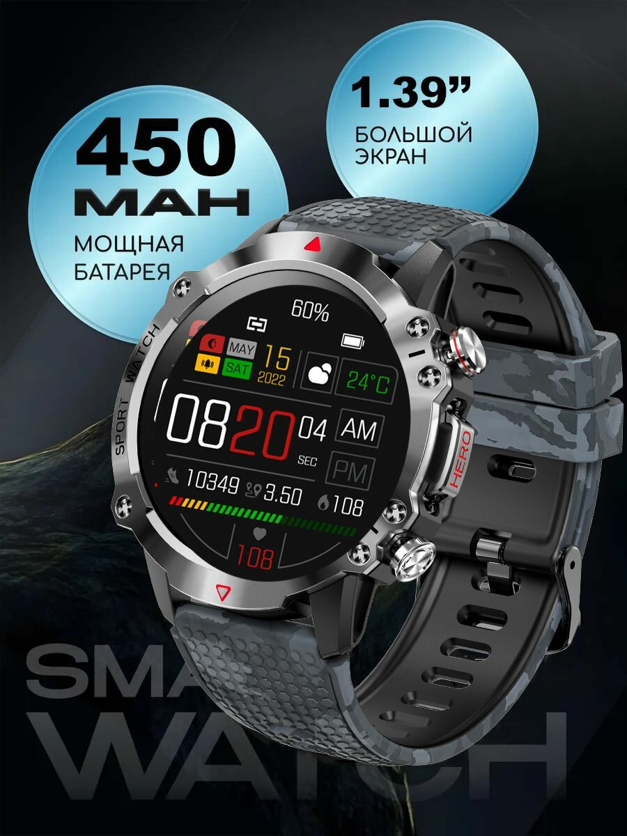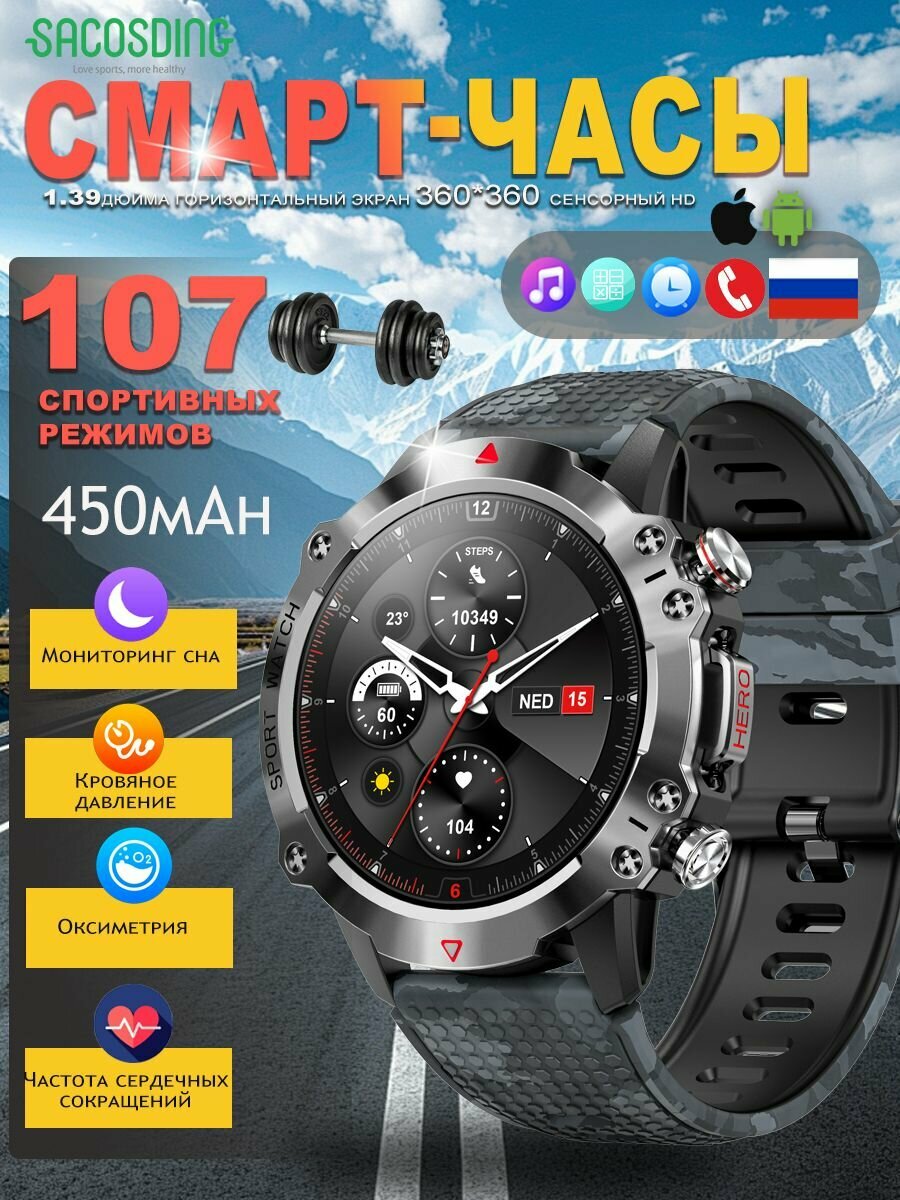 Купить Мужские спортивные смарт-часы на 450 мАч, 100+ спортивных режимов, монитор сердечного ритма, монитор кислорода в крови с доставкой по всей России.