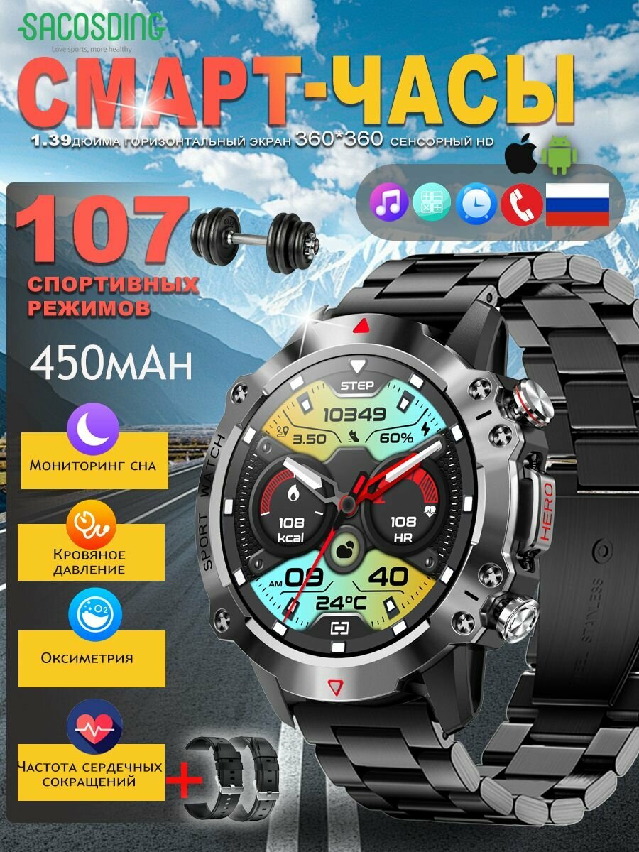 Купить Мужские спортивные смарт-часы на 450 мАч, 100+ спортивных режимов, монитор сердечного ритма, монитор кислорода в крови с доставкой по всей России.