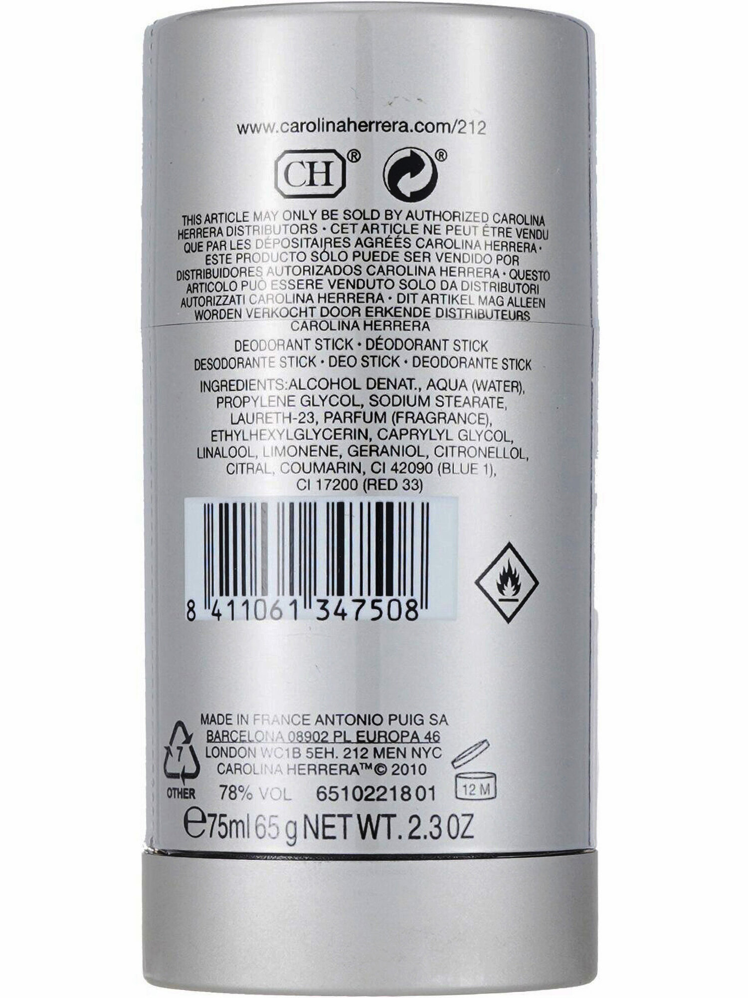 Купить Мужской дезодорант-стик Carolina Herrera 212 Men, парфюмированный 75 мл с доставкой по всей России. Мужской дезодорант-стик Carolina Herrera 212 Men, парфюмированный 75 мл: сравнение цен, характеристики, фото, актуальное наличие и цены.