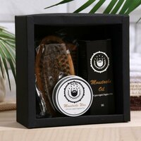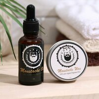 с натуральными составами масла и воска; масло восстанавливает структуру волос, питает и ускоряет рост; воск сделает волос гладким и обеспечит легкую фиксацию; расческа, щетка и ножницы помогут придать вашим усам и бороде любые формы и вид