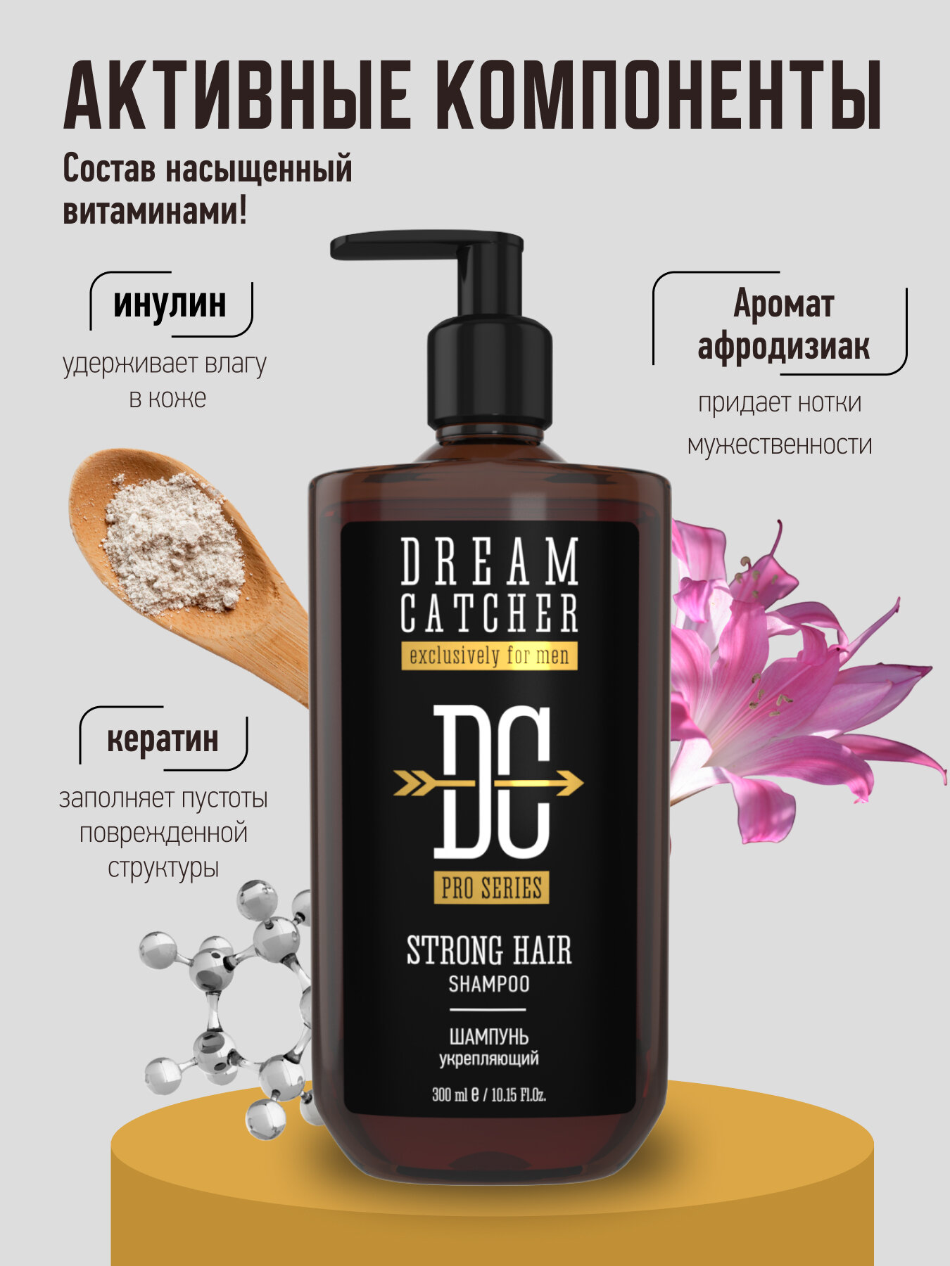 Укрепляющий мужской шампунь для тонких и редких волос STRONG HAIR SHAMPOO от бренда Dream Catcher. Специально разработан для ежедневного ухода за тонкими и ослабленными волосами. Уникальные компоненты пептидного комплекса делают волосы крепкими и упругими изнутри, защищают их структуру от внешних воздействий. Среди активных компонентов – инулин, который усиливает действие активных компонентов, и растительный белковый комплекс, обеспечивающий максимальный объем и плотность волос. Шампунь придает здоровье, силу и упругость волосам, оставляя приятный аромат шафрана, апельсина и кожи. Попробуйте STRONG HAIR SHAMPOO для современного мужчины и наслаждайтесь чистотой, объемом и мягкостью ваших волос.