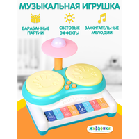 Играйте вместе с малышом на барабанах и веселитесь от души с компактной ударной установкой «Юный диджей»! Выбирайте и слушайте разные мелодии, нажимая на кнопку DJ, а затем выберите понравившуюся композицию и подыгрывайте ей в такт на барабанах. Вечеринка в самом разгаре? Тогда пора подключать в игру цветные клавиши: слушайте разные ритмы, добавляйте в мелодии забавные звуки и создавайте зажигательные миксы!