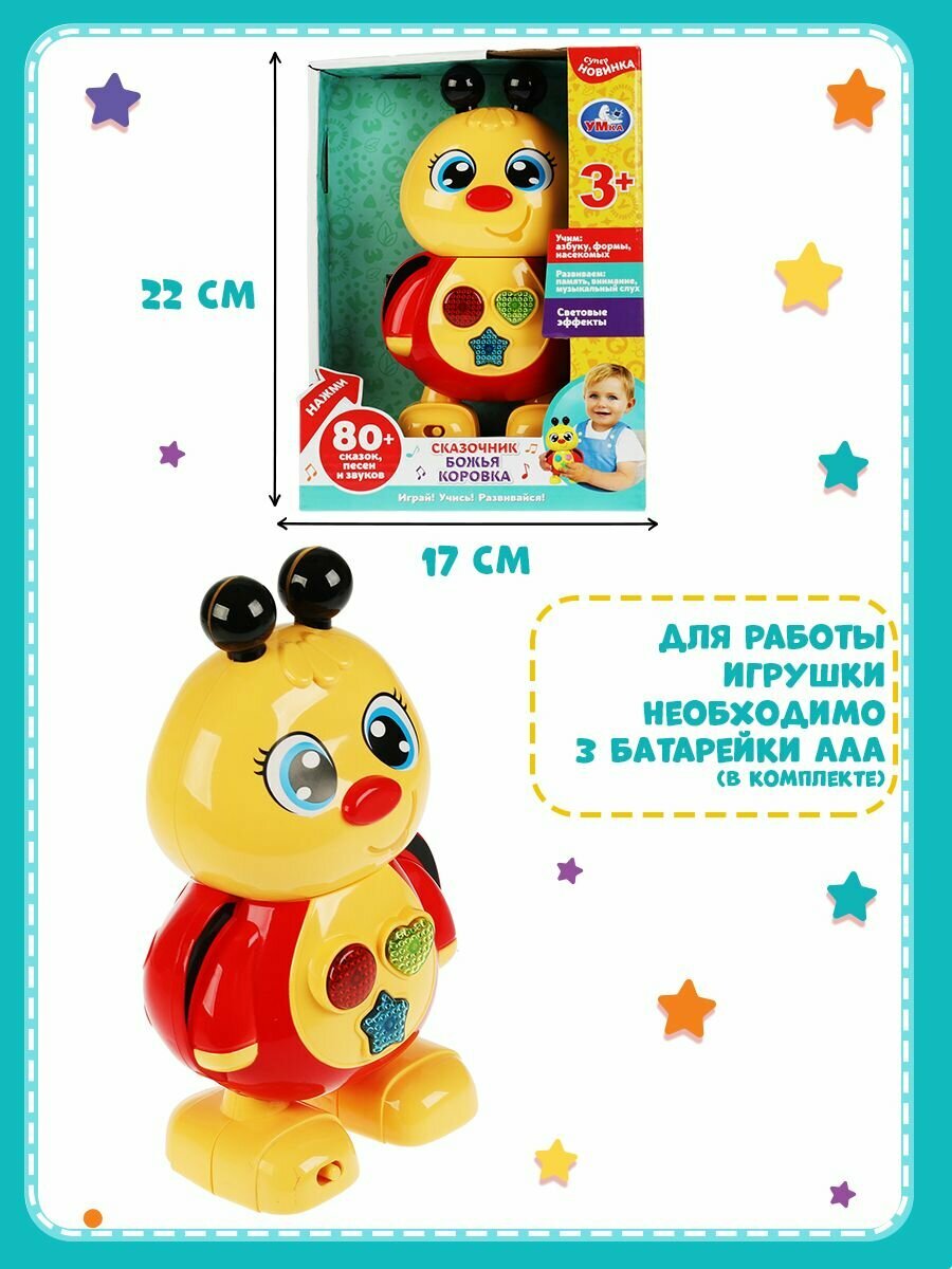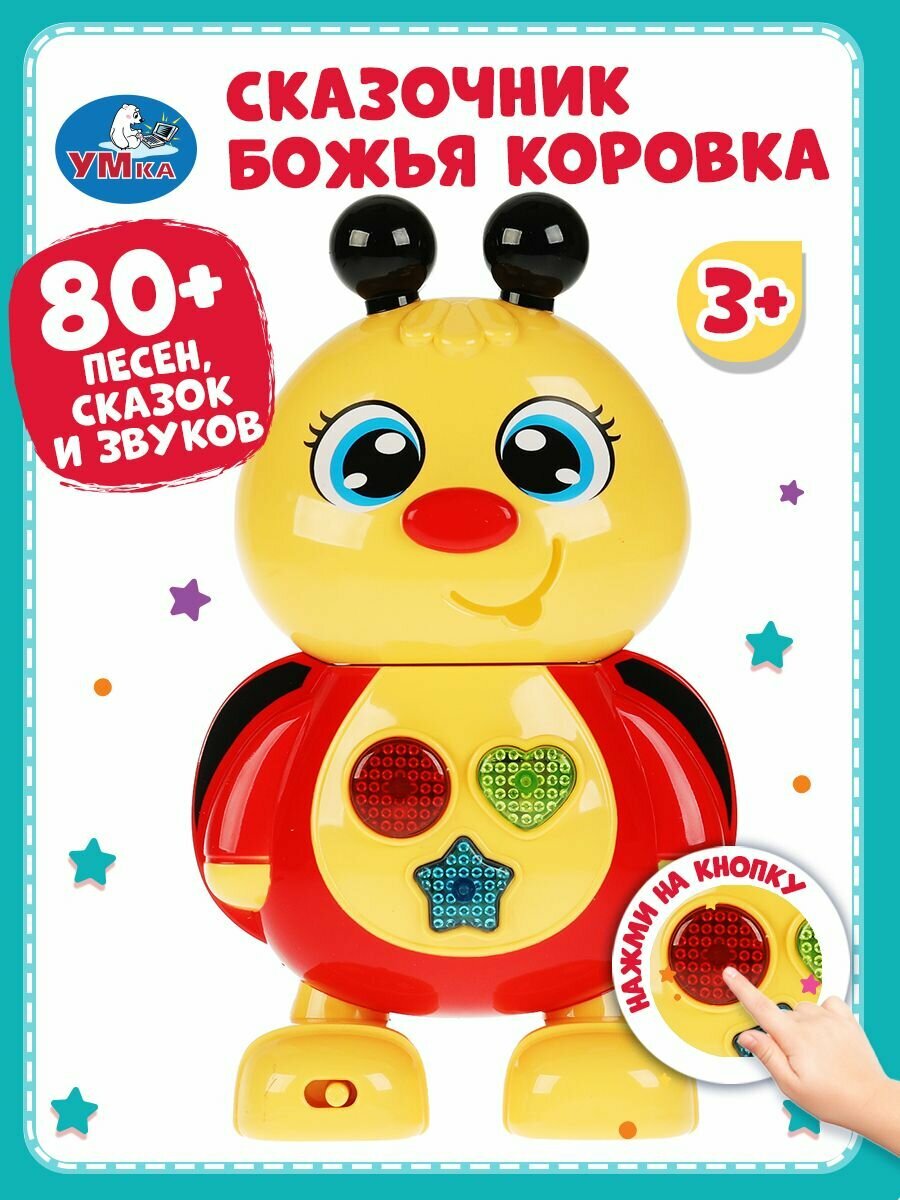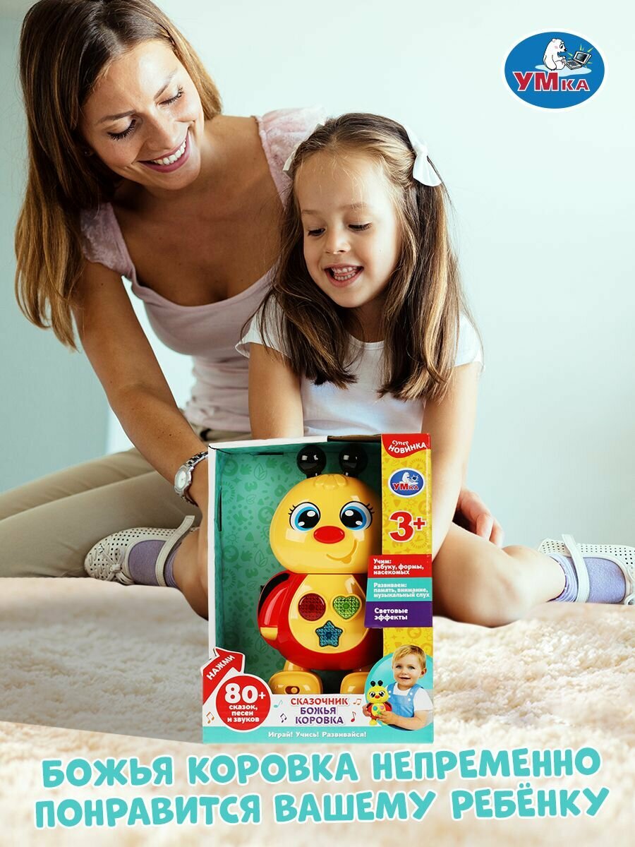 Сказочник божья коровка – замечательный компаньон для маленького непоседы. Интерактивный персонаж рассказывает волшебные истории, учит азбуке, помогает тренировать моторику пальчиков и тактильное восприятие.