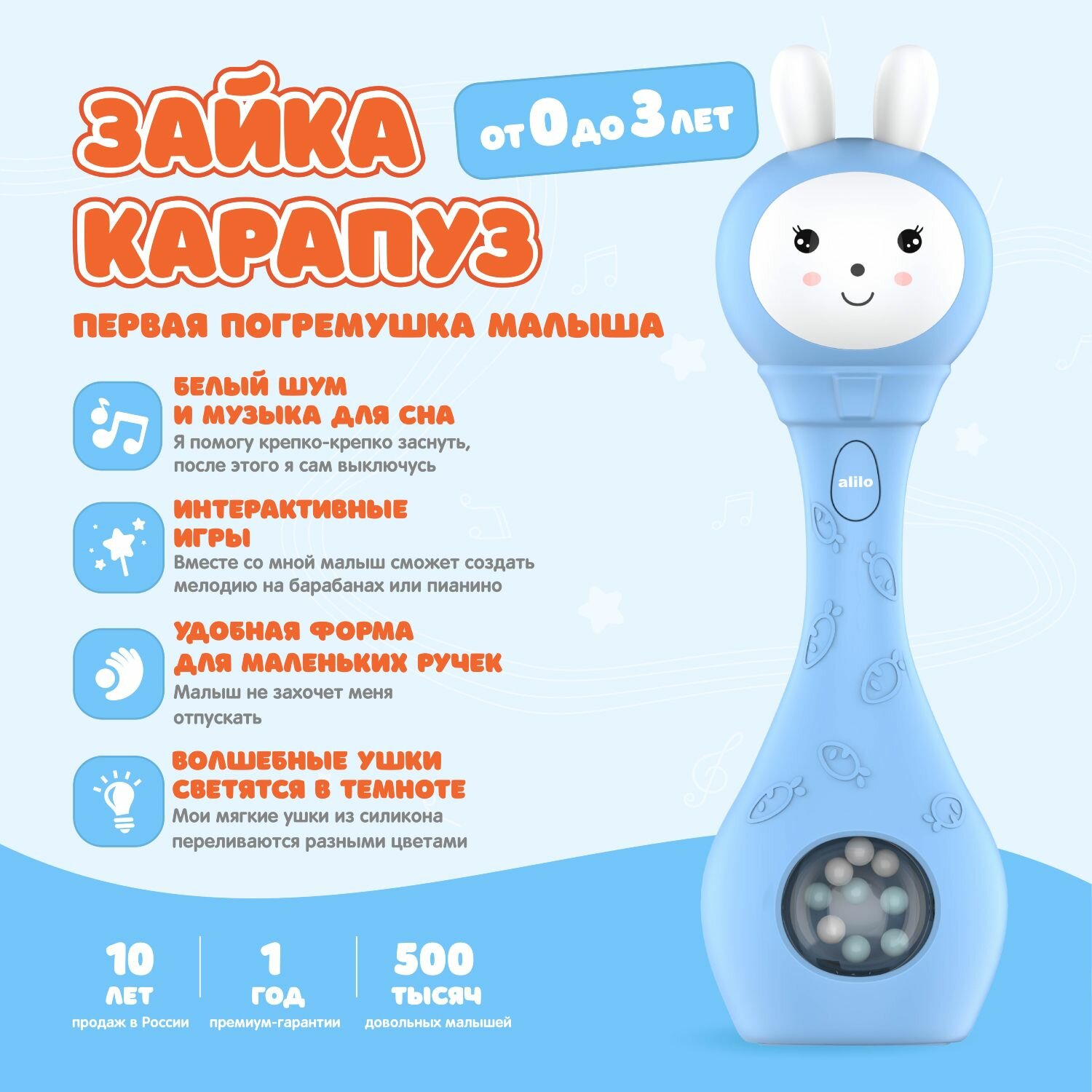 Купить Музыкальная интерактивная игрушка Зайка-Карапуз alilo S1. Погремушка, прорезыватель для мальчиков и девочек с доставкой по всей России.