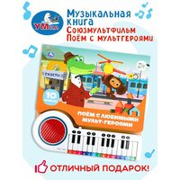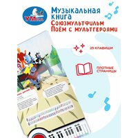 Штрихкод: 9785506086697\nАвтор: Успенский Э. Н. Энтин Ю. Заходер Б. В. Яковлев Ю.\nИздательство: ТМ: Умка\nФормат, мм: 260 х 255 мм\nЧисло страниц: 14\nВозрастн. ограничения: \nВес, кг: 0.644\nДлина, мм: 3\nШирина, мм: 26\nТолщина, мм: 26\nКод: УТ01869285 \nISBN: 978-5-50608-669-7\n\n\nКнига-пианино /Союзмультфильм. Поём с мультгероями/ ТМ /УМка/ станет прекрасным подарком для малыша:\n- 10 любимых песен (фрагменты): /Песенка Чебурашки/, /Голубой вагон/, /Песня Шапокляк/, /Песенка друзей/ (Бременские музыканты), /Песня разбойников/, /Лучший подарок/ (Винни-Пух), /Песенка Умки/, /Колыбельная Медведицы/, /Песенка о лете/, /Расскажи, Снегурочка/\n- тексты песенок\n- 23 клавиши\n- 2 режима работы\n- красочное оформление\n- плотные страницы\n- кнопка Вкл./Выкл. с возможностью регулировать громкость\n- режим Demo: выбери номер песни и нажми на нужную клавишу - слушай песню из мультика\n- режим Piano: играй мелодию самостоятельно, нажимая соответствующие нотам клавиши\n\nНа каждой страничке это занимательной книги ребёнка ждут красивые иллюстрации, тексты песенок и ноты к ним. При нажатии на кнопку слева от клавиш происходит переключение на режим проигрывания песен, при втором нажатии - переключение на пианино. В режиме пианино маленький музыкант, нажимая на клавиши, сможет наиграть по нотам-подсказкам песенки из книги или придумать свои собственные мелодии. Книга сделана из плотного картона, поэтому мамы могут не опасаться, что ребёнок порвёт странички.\n\nИгра с книгой-пианино ТМ /УМка/ развивает:\n- слуховое восприятие и музыкальный слух\n- фантазию\n- образное мышление\n- внимание\n- память\n- мелкую моторику\n\nМатериал: пластмасса + картон.\nРаботает от 2-х батареек типа АА (в комплекте).