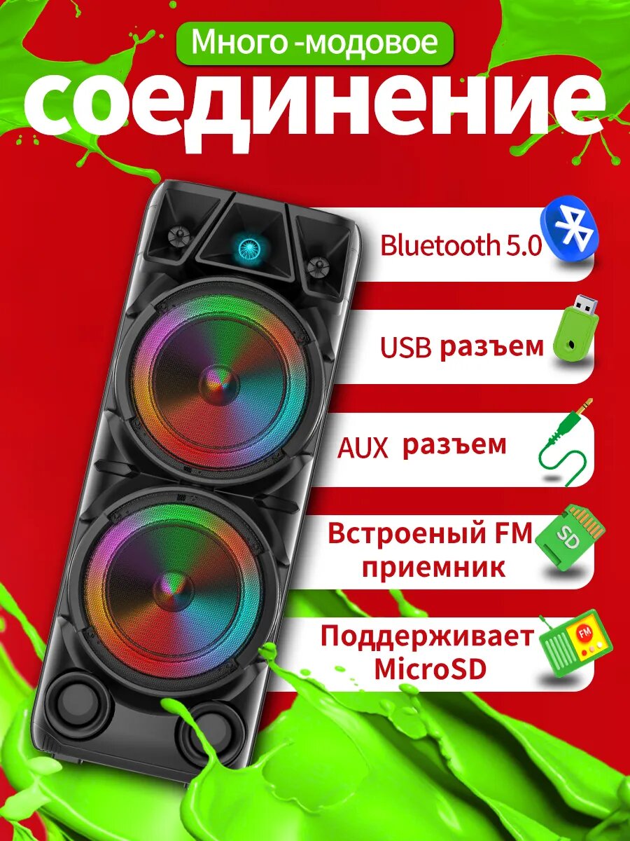 Музыкальная колонка OudioBop ZQS-8210 с караоке, подсветкой, беспроводная, чёрная: сравнение цен, характеристики, фото, актуальное наличие и цены.