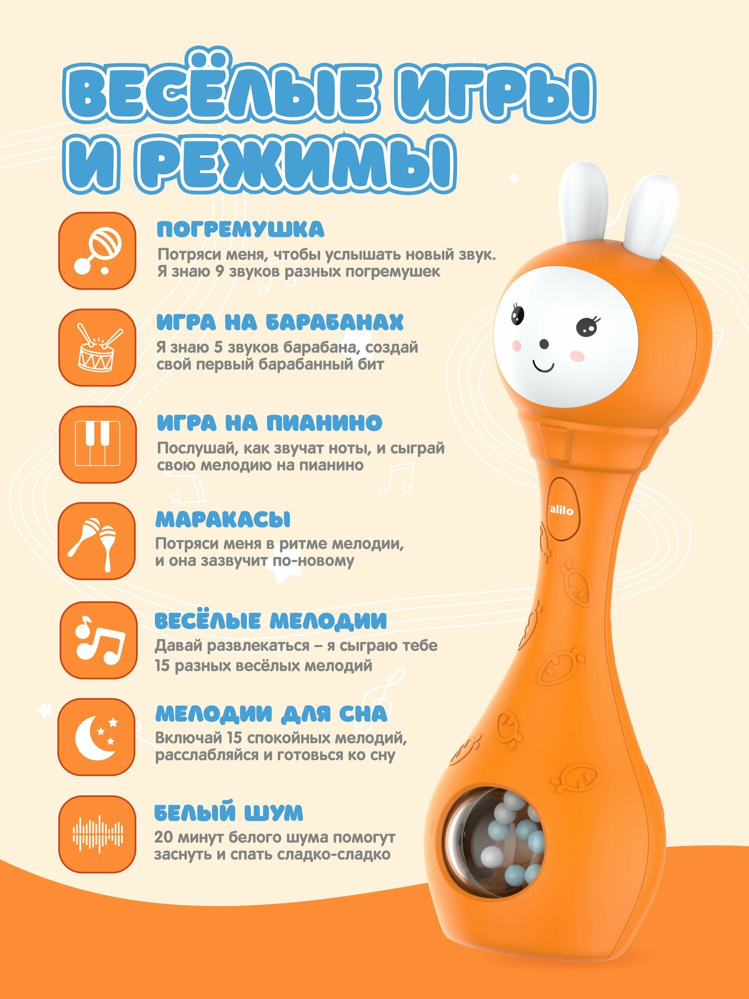 Музыкальная погремушка игрушка Зайка-Карапуз alilo для новорождённых 0+, белый шум: сравнение цен, характеристики, фото, актуальное наличие и цены.