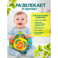 Интерактивная игрушка музыкальный руль - это многофункциональный игровой центр, который нравится всем малышам. С его помощью маленький автолюбитель почувствует себя настоящим водителем или гонщиком! Музыкальная игрушка руль детский выполнен в виде панели управления автомобилем. Бизиборд оснащен множеством функций: Звуковые сигналы и музыка Световые сигналы Поворотники, ключ зажигания, как в настоящей машине Руль поворачивается при этом перемещается фигурка-машинка на "лобовом стекле" Коробка передач имеет три режима Безопасное пластиковое зеркало Игровой руль оснащен специальными креплениями, благодаря которым игрушку можно надежно закрепить на кроватке, коляске, взять с собой в дорогу. Руль на коляску не оставит равнодушным ни одного малыша. Игрушка работает от 3-х батареек типа АА(входят в комплект). Руль игрушка стимулирует развитие тактильных навыков и концентрации внимания, развивает мелкую моторику, воображение, память, зрительное восприятие. Игрушечный руль понравится как мальчикам, так и девочкам. Развивающий центр сделан из безопасного пластика, не имеет мелких деталей и острых краев, поэтому полностью безопасен для малышей до года и деток постарше. Машины для мальчика идеальный подарок любимому малышу на годик, рождение малыша, день рождения, 23 февраля, новый год и любой другой праздник. Развивающая игрушка детский руль от Tripla идеальный подарок для вашего малыша.