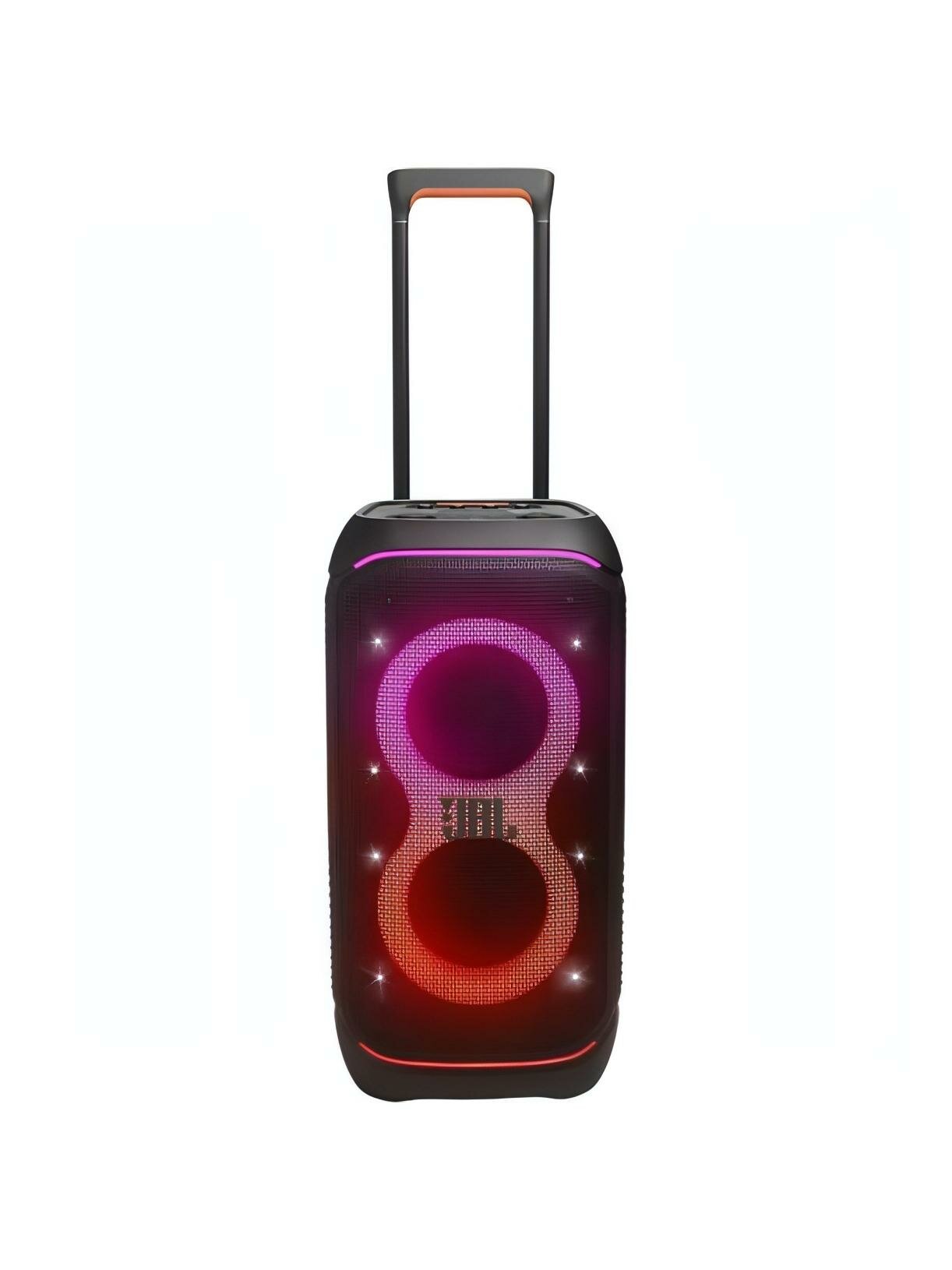 Музыкальная система Midi JBL PartyBox Stage 320 с двумя 6,5-дюймовыми НЧ-динамиками и двумя 25-миллиметровыми купольными твитерами позволит организовать громкую вечеринку даже на спортивном поле.