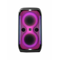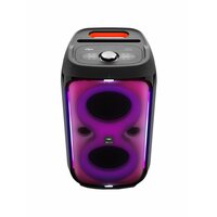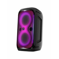 Система оснащена двумя фронтальными АС мощностью по 50 Вт. Уровень сопротивления — 6 Ом. Количество полос — две. Поддерживается широкий частотный диапазон от 30 Гц до 20 кГц. Тип акустического оформления — фазоинвертор. Мощность сабвуфера достигает 120 Вт. Предусмотрено два аудиовхода 3,5 мм для подключения микрофона и наушников. Корпус музыкальной системы выполнен из МФД и пластика, и дополнен подсветкой. Вес модели при размерах 62х34х35 см составляет 12,3 кг.