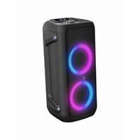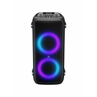 Музыкальная колонка оснащена двумя динамиками большой мощностью, что обеспечивает громкий и чистый звук без искажений. Она также имеет встроенный аккумулятор, который обеспечивает до 12 часов непрерывного воспроизведения музыки.