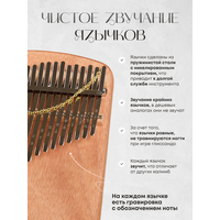 Калимба - это уникальный и завораживающий музыкальный инструмент, который покорит ваше сердце своим мягким и чарующим звучанием. Эта деревянная калимба с 21 нотами позволит вам создавать удивительные мелодии и расслабляющие композиции в любом месте и в любое время. Компактная калимба мини идеально подходит для начинающих музыкантов и ценителей портативных инструментов. Благодаря прилагаемым наклейкам на калимбу, вы легко сможете освоить игру и быстро научиться извлекать чистые и гармоничные звуки. В комплекте имеется цепочка, которая используется как часть конструкции калимбы, влияющая на ее звучание, а не просто для фиксации инструмента. Откройте для себя волшебный мир калимбы и погрузитесь в атмосферу умиротворения и творчества. Этот музыкальный инструмент станет вашим верным спутником на пути к гармонии и вдохновению.