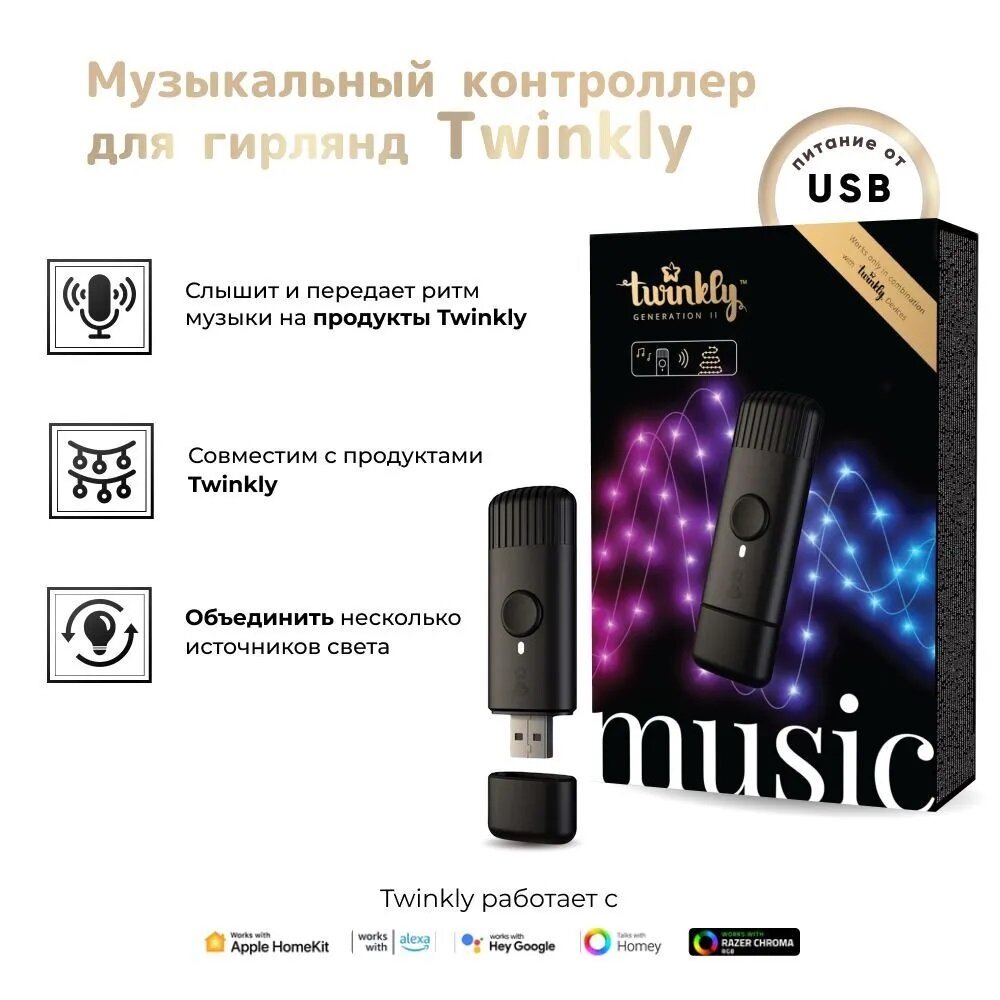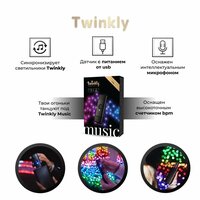 Передовые алгоритмы Twinkly Music декодируют любой аудиоисточник в режиме реального времени. Это устройство улавливает любую музыку в комнате своим микрофоном, а также реагирует на хлопки в ладоши или другие звуки. Контроллер включает в себя сверхточный детектор BPM, который готов заставить ваши огни танцевать синхронно с музыкой. Все управляется через мобильное приложение , совместимое как с Android, так и с iOS. Контроллер MUSIC предназначен для использования внутри помещений — степень защиты IP20 .