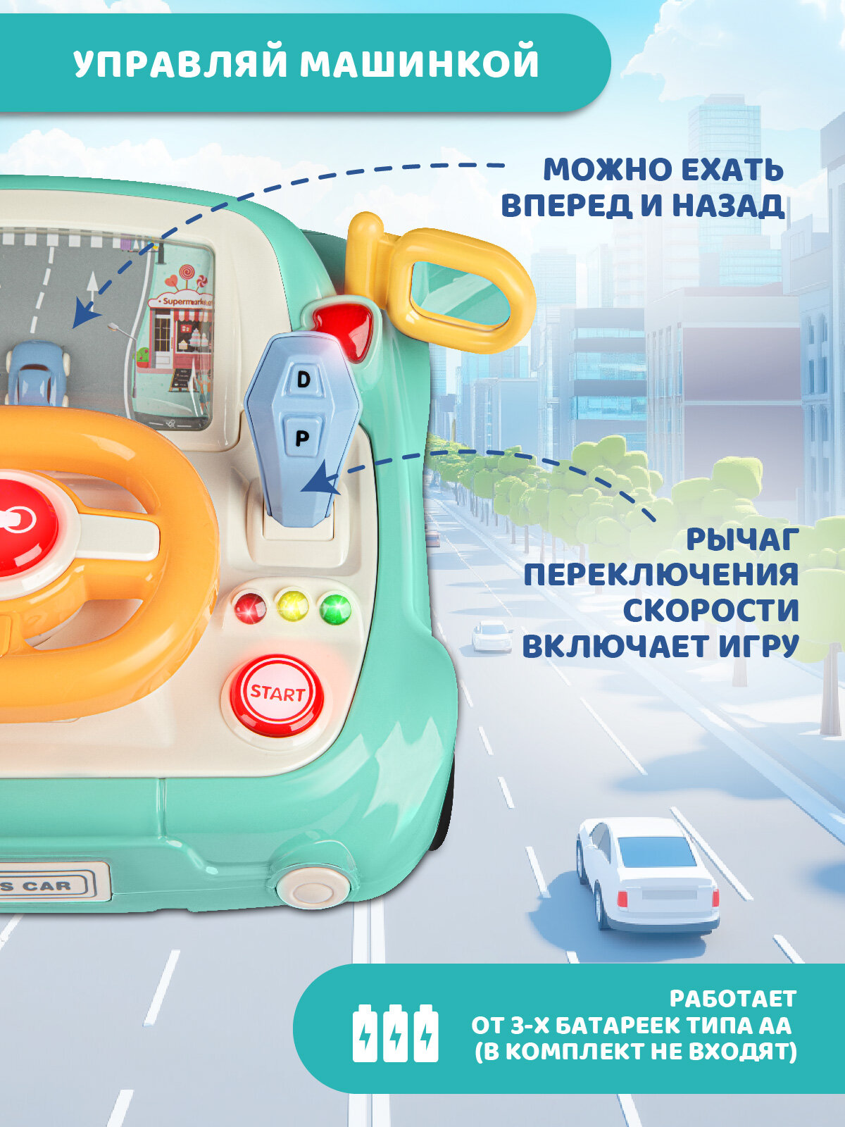 Интерактивная игрушка выполнена в виде панели управления автомобилем и сочетает в себе несколько игровых функций:
