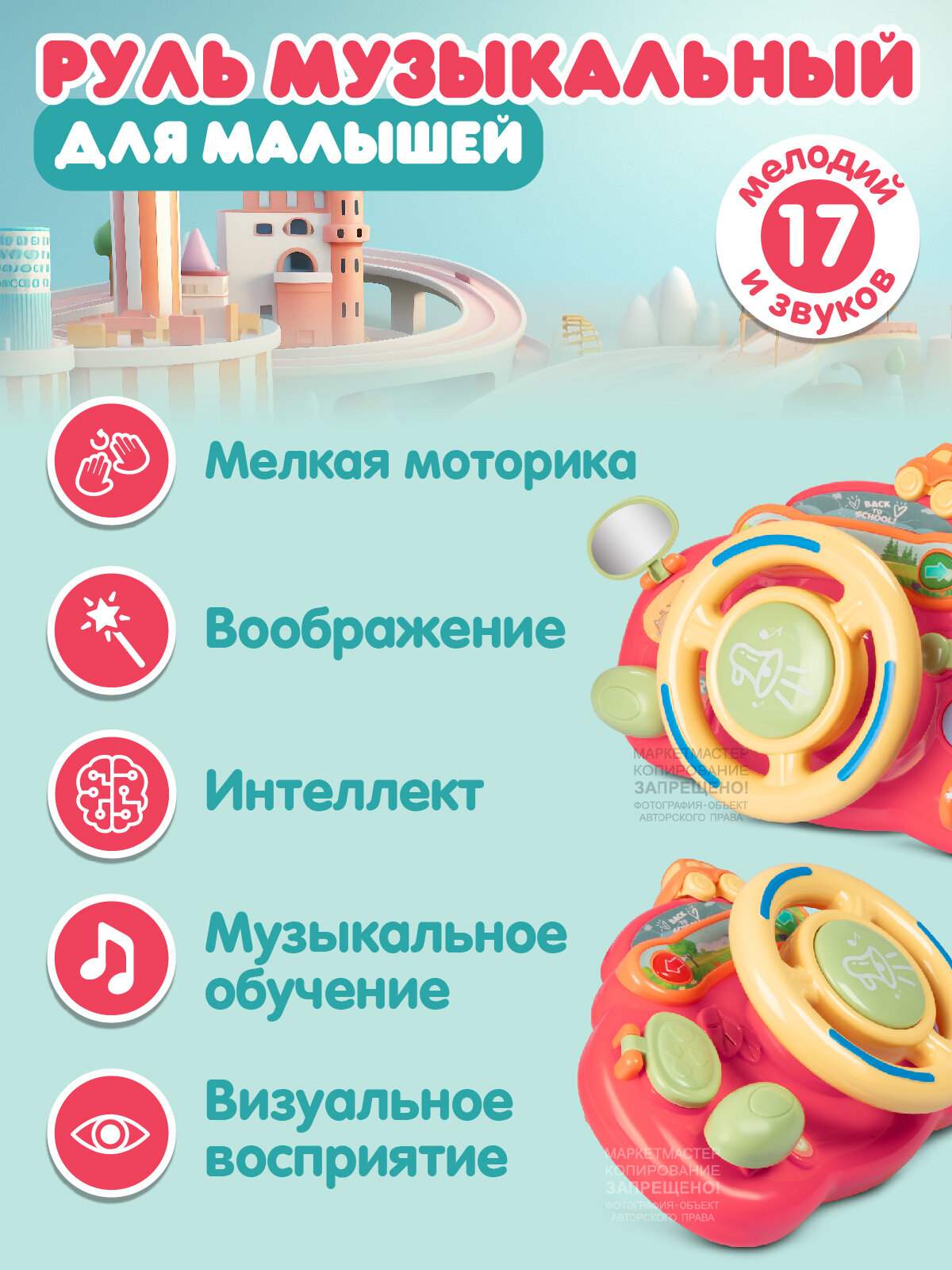 Музыкальный развивающий руль, юным автомобилистам, свет, звук, JB0334165: сравнение цен, характеристики, фото, актуальное наличие и цены.