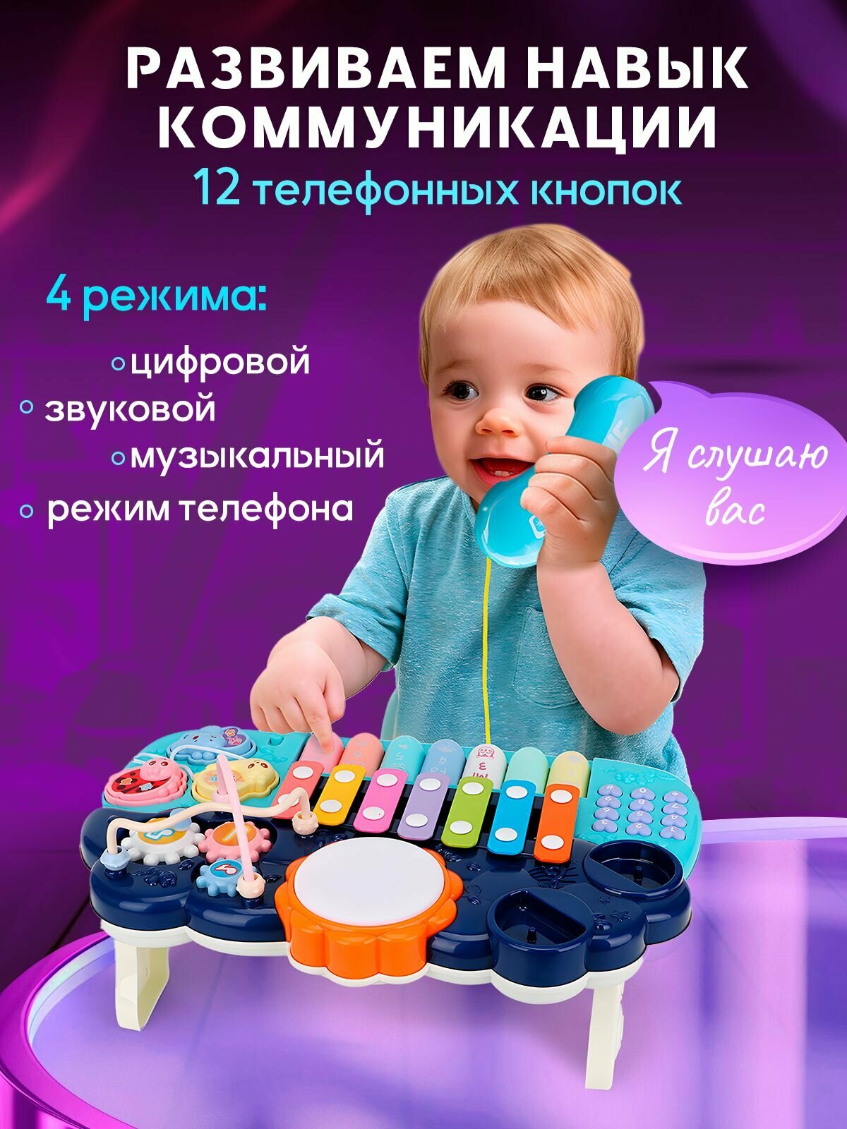 Музыкальный центр пианино WiMi 6 в 1, развивающий бизиборд для малышей, с телефоном: сравнение цен, характеристики, фото, актуальное наличие и цены.