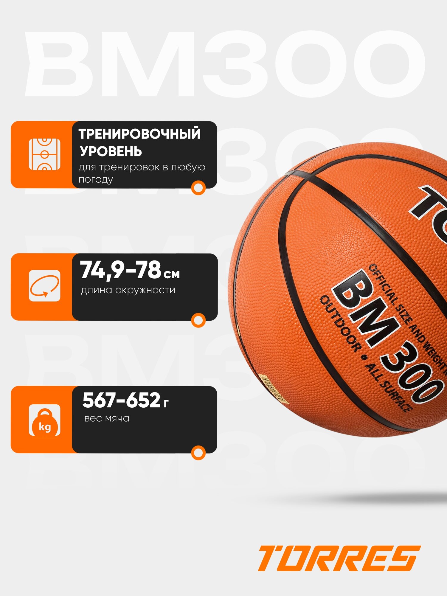 Купить Мяч баскетбольный TORRES BM300 B02017, размер 7 с доставкой по всей России.