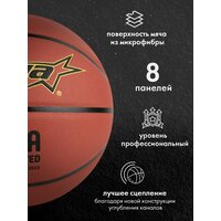 В линейке представлены модели разных размеров — №5, №6 и №7, а также варианты из кожи, полиуретана или резины. Вес мяча стандартный — около 640 г, что соответствует требованиям FIBA. Материал внешнего покрытия — износостойкий полиуретан или мягкая резина, подходящая как для зала, так и для уличных площадок.
