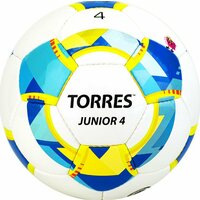 Серия TORRES Youth, к которой принадлежит модель Junior-4, разработана для тренировок и игр детей и подростков. Мяч имеет размер стандартной "четверки" (длина окружности 63,5-66 см), но меньший вес - 310-330 г по сравнению со стандартным 350-390 г, что облегчает тренировки и способствует выработке правильных игровых навыков. Предназначен для игроков до 10-12 лет. Подходит для игры на любых поверхностях, для игры в любых погодных условиях (при соблюдении условий эксплуатации и ухода). Каркас из глянцевого полиуретана толщиной 0,9 мм на нетканой основе и 3-х подкладочных слоев (2 слоя хлопка, 1 слой вискозы), бутиловая камера с бутиловым ниппелем. Ручная сшивка, 32 панели. Размер 4.