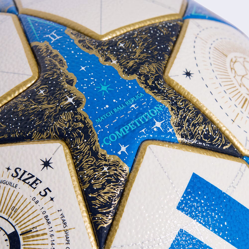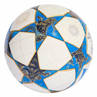 Мяч футб. ADIDAS UCL Competition JP1541, размер 5, 32 панели, FIFA Quality Pro, ПУ, термосш, бело-синий Футбольный мяч Adidas UCL Competition - матчевая реплика официального мяча Лиги Чемпионов УЕФА, создан для интенсивной и точной игры. Благодаря данной модели (реплике офиц. мяча ЛЧ) игра любого, даже менее масштабного, уровня может стать не менее яркой. Мяч изготовлен по самой инновационной на сегодня технологии - технологии термосшивки (термосклеивания) панелей. Покрышка мяча состоит из 32 панелей, изготовленных из глянцевого полиуретана с подкладочным слоем из пены ЭВА (этиленвинилацетат). Данная конструкция положительно влияет на сферичность мяча, а также позволяет добиваться его стабильного и ровного полета. Бутилкаучуковая камера с одним подкладочным слоем из синтетической ткани. Одобрен FIFA - сертификат FIFA Quality Pro (FIFA Approved), для проведения официальных соревнований высшего уровня. Рекомендуется для профессиональных команд и клубов. Размер: 5; Страна-производитель: пакистан; Материал камеры: Бутил; Тип соединения панелей: Термосшивка; Количество панелей: 32; Количество подкладочных слоев: 1; Материал покрышки: Синт. кожа (полиуретан); Цвет дополнительный: Золотистый; Уровень: Матчевый; кодтнвэд: 9506620000; Ширина, мм: 230; Высота, мм: 230; Длина, мм: 230; Вес, г: 430;