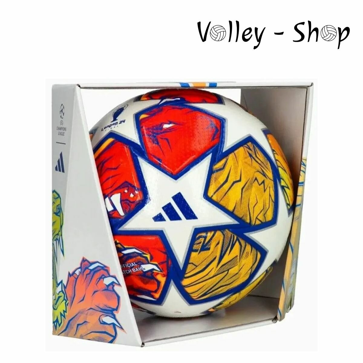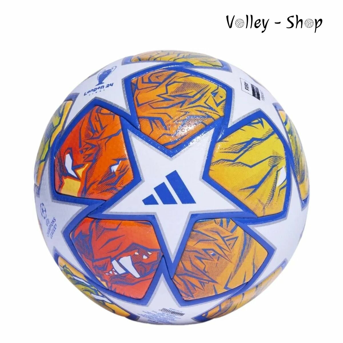 Официальный игровой мяч финала Лиги чемпионов УЕФА 2024 Adidas UCL PRO создан для самых важных моментов финального матча. Одобрен FIFA - сертификат FIFA Quality Pro (FIFA Approved), для проведения официальных соревнований высшего уровня. Привлекательный дизайн посвящен городу-хозяину финала турнира - Лондону, а яркая графика изображает двух рычащих львов, сражающихся среди звезд. Лев символизирует богатую историю и культуру Великобритании и ее столицы, олицетворяет храбрость и силу игроков, а также величие самого желанного трофея в европейском клубном футболе. На панели стильным каллиграфическим почерком выведена надпись "London 24 Final", а яркие детали мяча усиливают визуальный эффект, делая игру более зрелищной. Фирменные звездные панели указывают на то, что им будут играть самые звездные футболисты. В мяче реализован целый ряд технологий от Adidas, включая инновационную текстуру поверхности PRISMA, которая поможет ведущим игрокам Европы играть еще точнее. Внешнее покрытие обеспечивает надежное сцепление и полный контроль над мячом. Текстурная поверхность мяча выполнена из высококачественной синтетической кожи (полиуретан), а бутилкаучуковая камера с одним подкладочным слоем из синтетической ткани надежно удерживает воздух. Мяч изготовлен по технологии термосшивки (термосклеивания) панелей, которая улучшает показатели сферичности мяча, намного превосходящие самые строгие требования FIFA, а также уменьшает поглощение влаги и увеличивает износостойкость мяча. Мяч поставляется в фирменной картонной коробке.