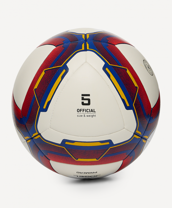 JÖGEL Primero - обновлённый дизайн в узнаваемых клубных оттенках одной из самых продаваемых моделей в линейке Pro Training. Primero - мяч матчевого уровня, соответствующий всем требованиям FIFA и разработанный по новейшим технологиям создания футбольных мячей.