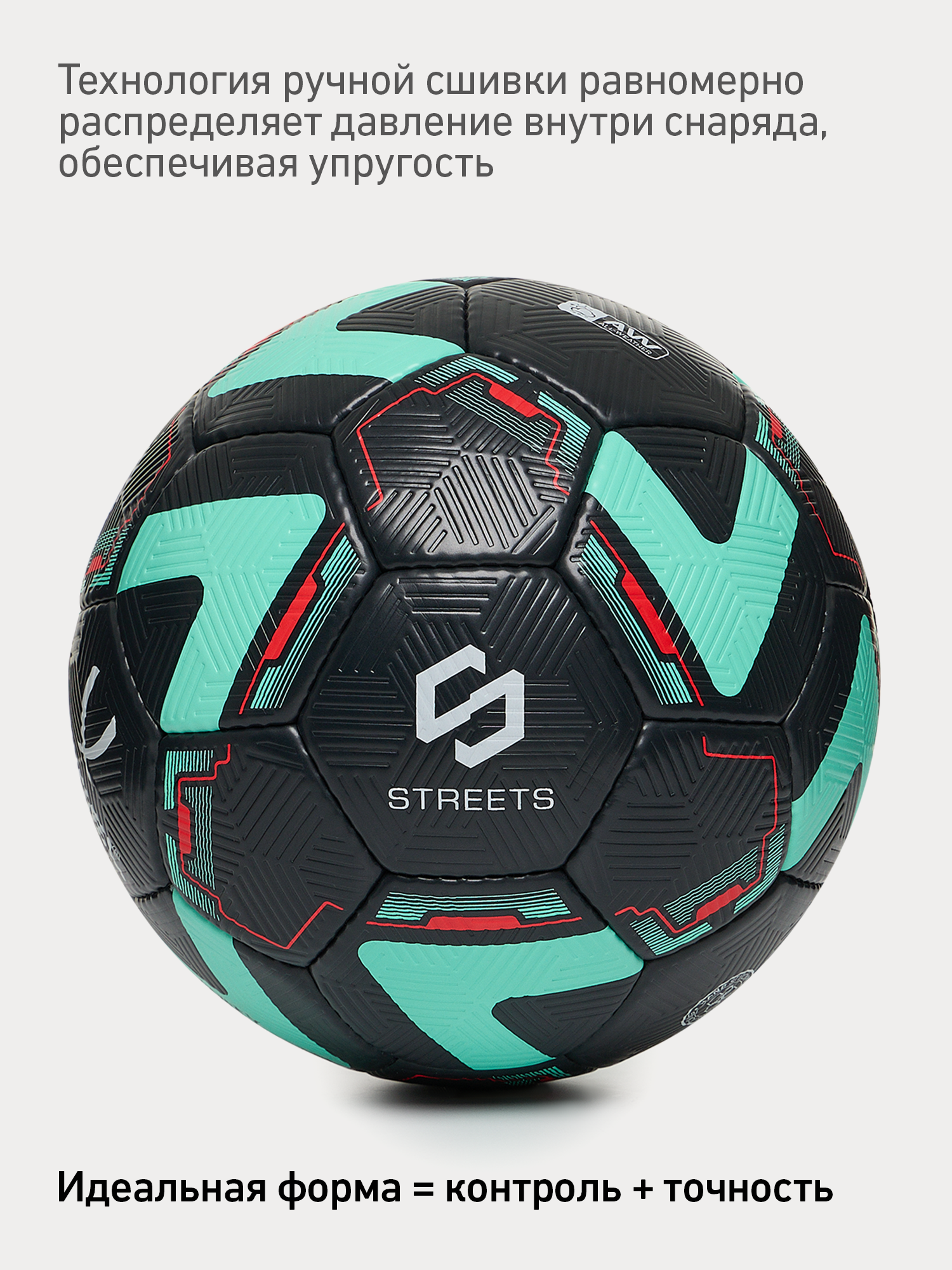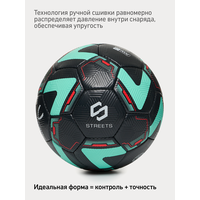 Обновлённый дизайн первого футбольного мяча JÖGEL в линейке Streets. Красивое оформление дизайнерских элементов в мятном и красном цветах на чёрном фоне. Trinity выполнен по технологии ручной сшивки, придающей ему максимальную надежность. Повышенная износостойкость, обеспеченная материалом поверхности и специальным дизайном тиснения, позволяет играть мячом на самых жестких уличных покрытиях. Мяч составлен в традиционной конструкции из 32 панелей и оснащен латексной камерой с бутиловым ниппелем для обеспечения продолжительного сохранения воздуха в камере. Поверхность выполнена из глянцевой текстурированной синтетической кожи (полиуретана). Модель имеет 4 подкладочных слоя на нетканой основе (смесь хлопка с полиэстером). Данный мяч рекомендован для любительской игры и тренировок любительских команд, подходит для любых возрастов.