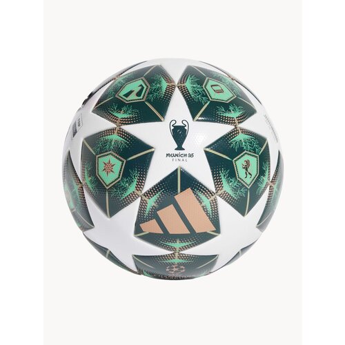 Мяч футбольный "Лига Чемпионов" имеет зеленый, оранжевый и белый цвета, что придает ему яркий и привлекательный вид.