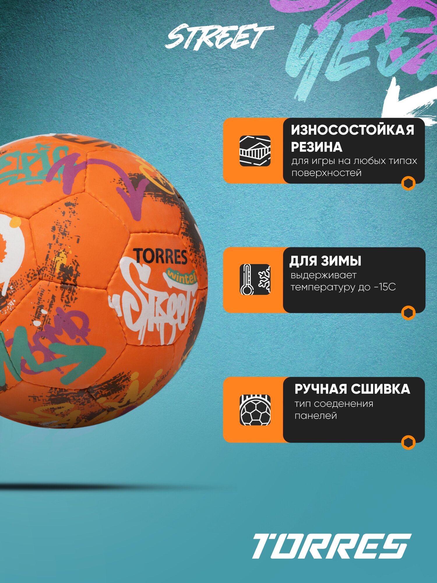 Именно таким мячом и является TORRES Winter Street серии Street, по своим параметрам и цене не имеющий аналогов на российском рынке.