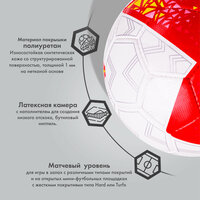 Futsal Match - матчевый мяч для футзала, предназначенный для игр и тренировок команд и клубов среднего уровня. Износостойкая синтетическая кожа (полиуретан) со структурированной поверхностью, толщиной 1 мм на нетканой основе, 4 подкладочных слоя из полиэстера, латексная камера с наполнителем для создания низкого отскока, бутиловый ниппель. Ручная сшивка, 32 панели. Стандартный размер 4 (вес 410-430 г, длина окружности 62-64 см). Рекомендуется для игры в залах с различными типами покрытий и на открытых мини-футбольных площадках с жесткими покрытиями типа Hard или Turf .