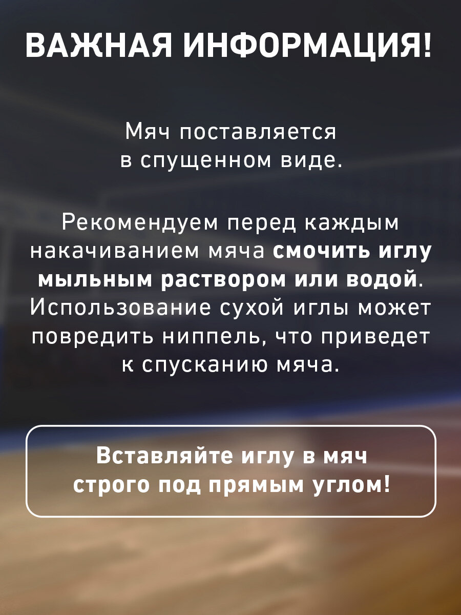 Внимание: мяч поставляется в спущенном виде. Рекомендуем приобрести насос и иглу для накачивания.