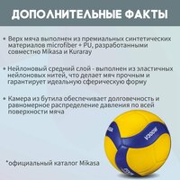 | Дополнительная информация | мяч сертифицирован FIVB для проведения соревнований высшего уровня - сертификат FIVB Approved; уровень подготовки: профессиональный; материал обмотки камеры: нейлоновая нить; материал камеры: бутиловая; вес 260 - 280 г; окружность 65 - 67 см |