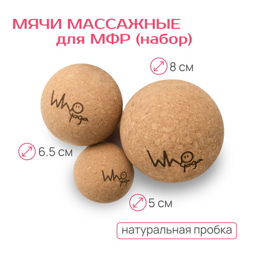 Мячики (шарики) массажные пробковые жесткие изготовлены из натурального материала - пробка, который имеет антибактериальные, грязеотталкивающие свойства. Пробка - гладкий, тактильно приятный материал. Вы получаете набор из трех мячей маленького, среднего и большого размера: 5, 6.5 и 8 см. Мяч МФР способствует уменьшению боли, его можно использовать для снятия напряжения и для занятий йогой. Также жесткий МФР мяч (шар) подойдет для профилактики и восстановления после спортивных травм и растяжений. Массажный мяч для МФР является обязательным инструментом для тех, кто хочет самостоятельно массировать ладони, руки, ноги (стопы, голени, бедра), ягодицы, плечи, спину (шею, грудной отдел, поясницу), подколенные сухожилия. Мячик специально разработан для разблокировки зажатых мягких тканей и триггерных точек - небольших узлов напряжения внутри фасции. Мяч-массажер поможет Вам сделать миофасциальный релиз (МФР). После такого массажа/самомассажа фасции приобретают лучшую эластичность, постепенно снимаются болевые ощущения в мышцах от "надолго" до "насовсем" (при регулярных занятиях). В результате такого массажа разгоняется лимфоток, активируется кровообращение, появляется чувство бодрости, прилива энергии. Массаж помогает разогреть мышцы перед тренировкой и растянуть и расслабить их после тренировки. С помощью МФР шара можно делать как взрослый, так и детский массаж. Ваш доктор мог порекомендовать Вам "теннисный мяч для массажа". Наши мячи - профессиональные МФР массажеры.