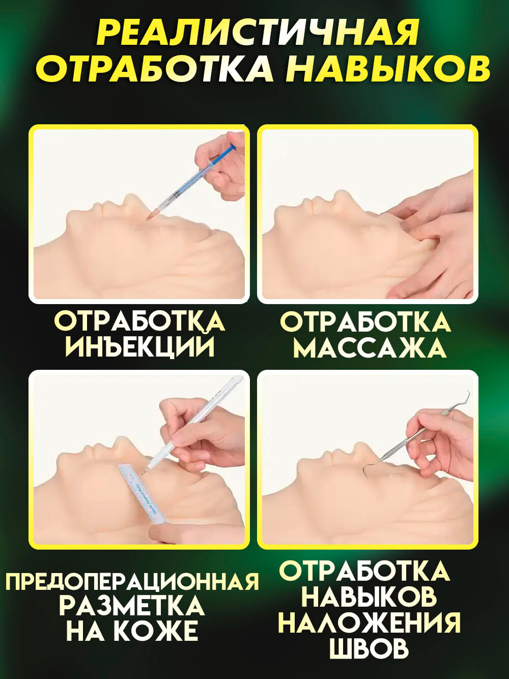 Представляем вашему вниманию уникальный тренажер в виде реалистичной головы человека для отработки различных типов инъекций, который станет незаменимым помощником для образовательных учреждений, медицинских учебных центров косметологии, массажа, акупунктуры, пластической хирургии и индивидуальных практиков.