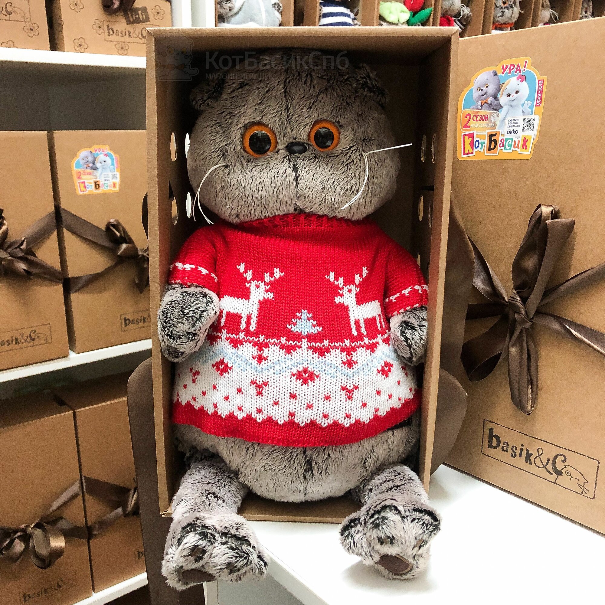 Представляем вашему вниманию мягкую игрушку - кота Басика в свитере с оленями. Этот очаровательный котик станет прекрасным другом для вашего ребенка и незаменимым элементом детской комнаты. Удобный размер 30 см позволяет брать его с собой на прогулки или путешествия.