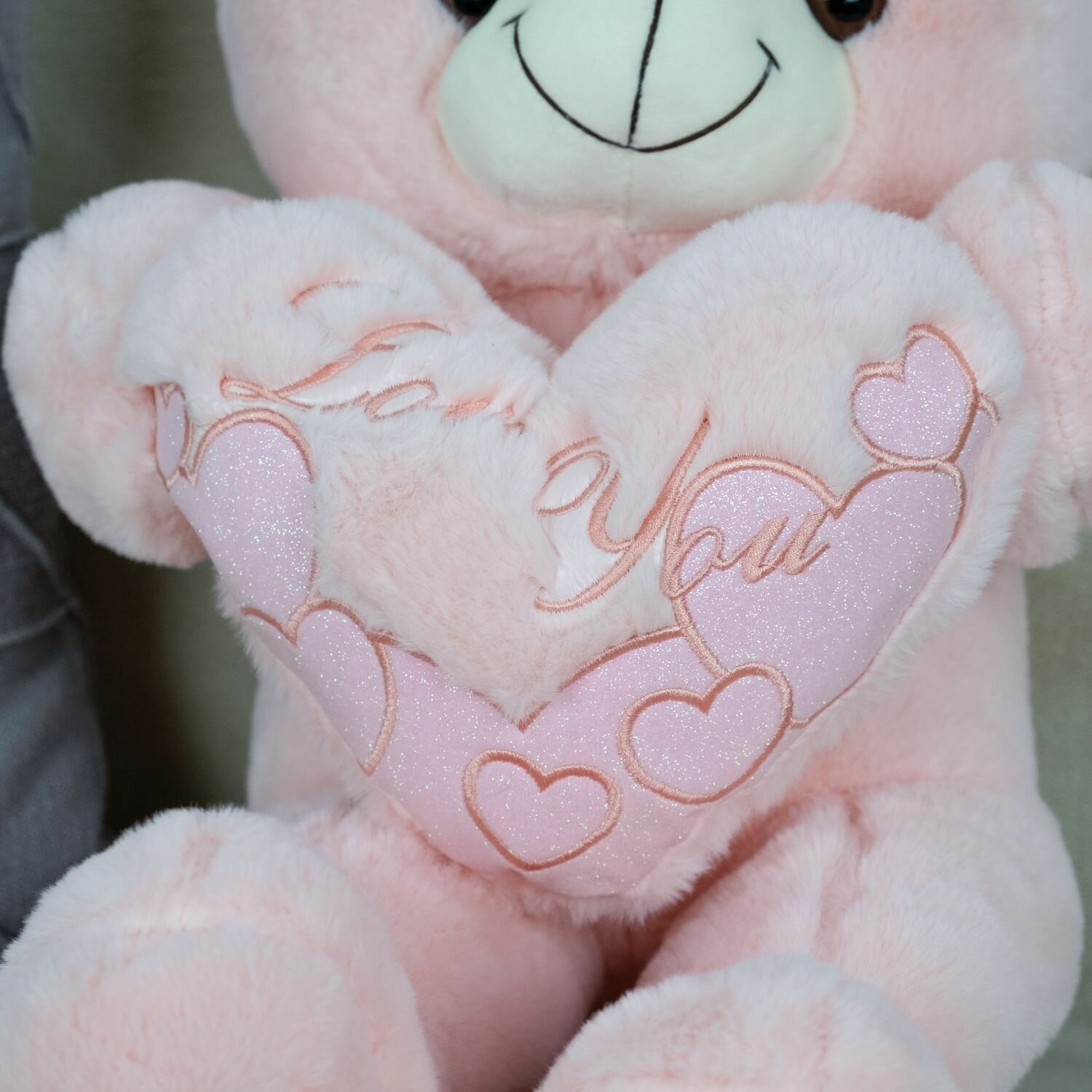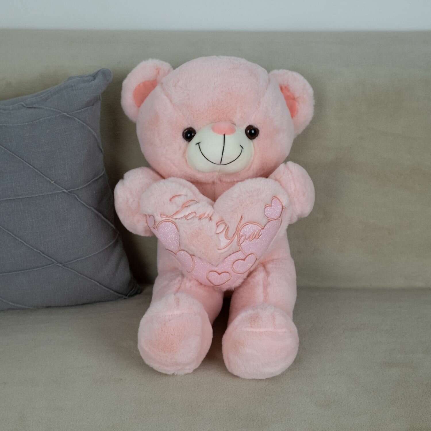 Купить Мягкая игрушка большой Мишка с сердцем для девочек мальчиков / Плюшевый Медведь для малышей KiDWoW розовый 55см с доставкой по всей России.