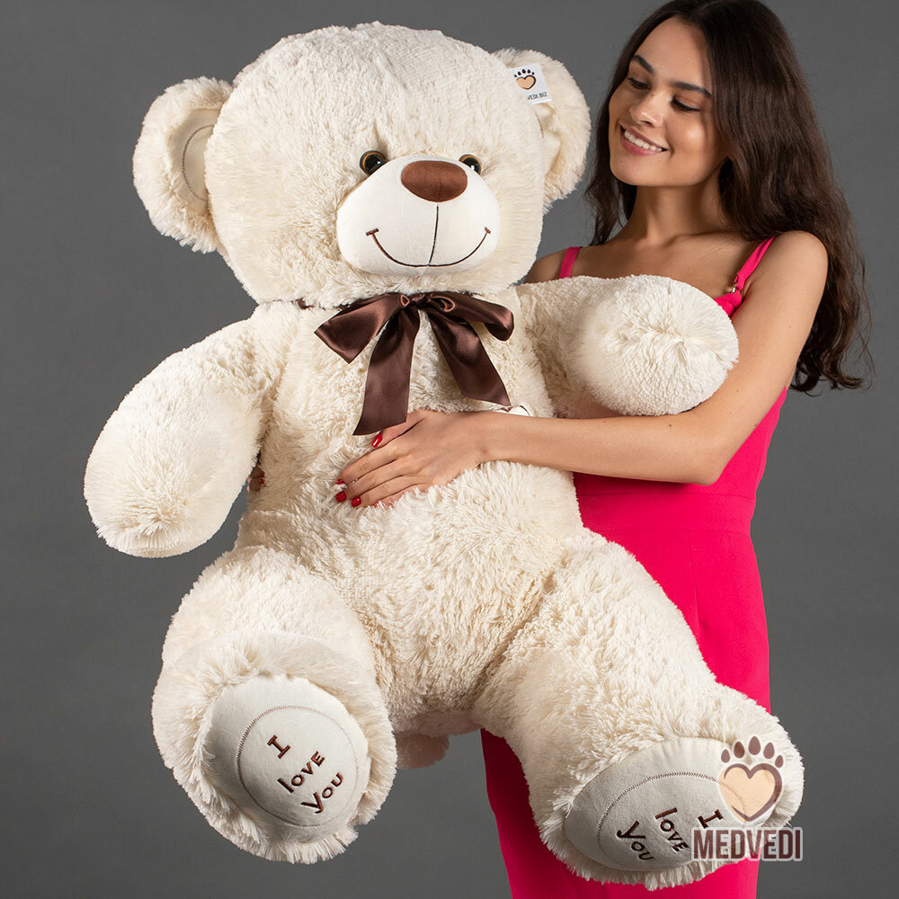 Большой и мягкий плюшевый медведь мишка игрушка 140 см молочного цвета. Прекрасно подойдет в подарок для любимого человека. На день рождение, новый год, 14 февраля, 8 марта, день святого Валентина, свидание и просто так.