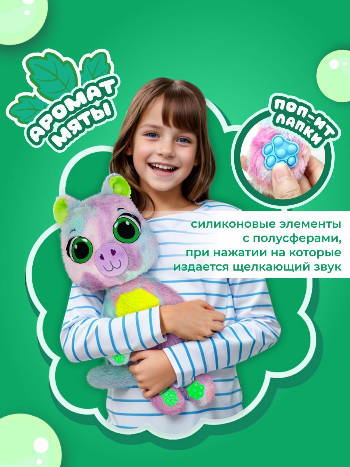 Мягкая игрушка BubblePops Мятная капибара — это не просто мягкая игрушка, а настоящий приятный сюрприз для детей и их родителей. Высота от 34-47см, она идеально подходит для обнимания, а её ароматизатор придаёт особую атмосферу уюта и комфорта. Аромат, который выделяет игрушка, создаёт ощущение волшебства, позволяя детям погрузиться в мир своих фантазий. Функция поп-ит на лапках делает эту игрушку ещё более увлекательной. Силиконовые элементы с полусферами не только приятно щелкают при нажатии, но и развивают тактильные ощущения у детей. Эта особенность помогает развивать моторику у детей. Игрушка станет отличным компаньоном для игр как дома, так и на улице. Упаковка в виде пластинки жевательной резинки добавляет элемент креативности и яркости. Вакуумная упаковка позволяет сохранить форму игрушки до момента вскрытия, после чего она расправляется в течении суток, превращаясь в милого друга. BubblePops Мятная капибара станет превосходным подарком на любой праздник, будь то 8 марта, день рождения или Новый год, радуя своим уникальным дизайном.