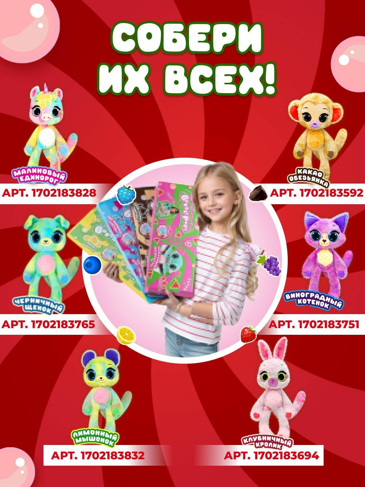 Мягкая игрушка 23 см в виде коровки, с ароматизатором и функцией поп-ит на лапках (силиконовые элементы с полусферами, при нажатии на которые издается щелкающий звук). Игрушка упакована в вакуумный пакет и распрямляется до нормальных размеров после вскрытия пакета. Наружняя часть упаковки имеет дизайн пластинки жевательной резинки. Максимальный возраст ребенка: До 10 лет; Вид мягкой игрушки: Бык/Корова; Минимальный возраст ребенка: От 3 лет; Высота игрушки: 23; Пол ребенка: Девочки;