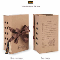 Басик в футболке с дракончиком выглядывает из своей уютной коробочки с бантиком. Он внимательно смотрит на своих новых хозяев медовыми глазками и мечтает поскорее оказаться в ласковых объятиях.