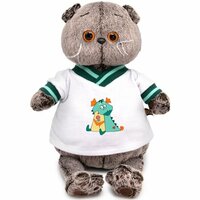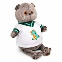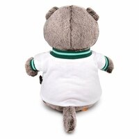 Котик-модник одет в белую кофточку из мягкого тонкого хлопка. Грудку украшает забавная термонаклейка. V-образный вырез и длинные рукава отделаны трикотажной тесьмой в изумрудно-мятную полоску. Гардероб милого Басика можно пополнять. Оригинальные костюмы приобретаются отдельно.