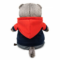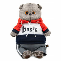 Кот Басик в супермодном костюме в стиле спорт-шик из плотного х/б трикотажа графитового, алого, серого и белого цветов. Толстовка сшита с капюшоном и принтом «basik». Штанишки выполнены с белыми лампасами. Размер котика Басика (в сидячем положении): 25 см. Все Басики упакованы вот в такую подарочную коробку, перевязанную атласной ленточкой. Эта коробка может служить переноской для Вашего кота Басика. Пополняйте гардероб Вашего любимчика кота Басика новыми нарядами!