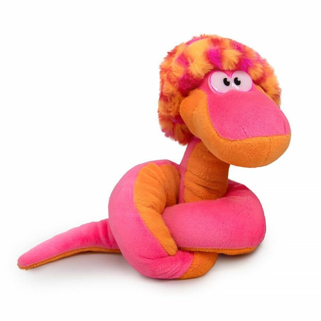 Неоново яркая Линни сшита из ярко розового и оранжевого софта. На голове у змейки забавная меховая шапочка, которая подчеркивает ее непоседливый характер. Размер игрушки (длина): 60 см.