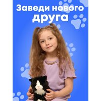 Черно-белый котик невероятно очаровательный и нежный. У него классическая черно-белая окраска, а также милые черты лица, крупные глаза и нежный розовый носик. У черно-белого котика маленькие заостренные ушки и лапки в носочках, а также мягкий хвост. Игрушка выполнена их качественного искусственного меха, она мягкая и бархатистая на ощупь.