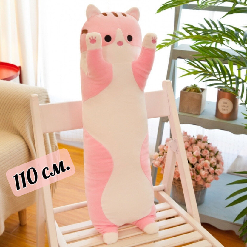 Купить Мягкая игрушка девочек и мальчиков Кот батон 110 см Розовый подушка обнимашка антистресс подарок для девочки и мальчика с доставкой по всей России.