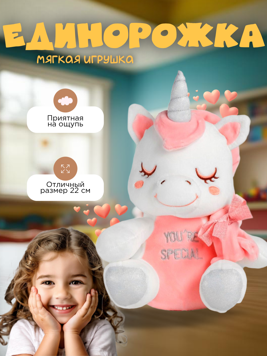 Мягкая игрушка «Единорог», антистресс, 22см, синтепон, розовый: сравнение цен, характеристики, фото, актуальное наличие и цены.