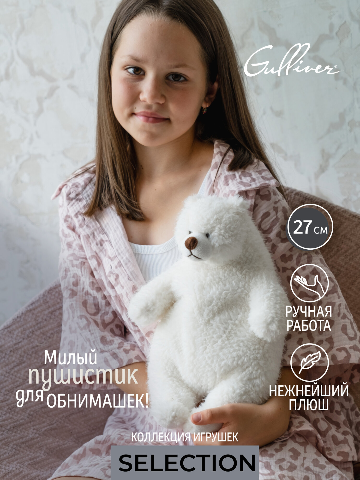Мишка Пух из коллекции Selection от Gulliver — это пухлый и мягкий медвежонок белого цвета. У него большой и мягкий животик, а милая мордашка с черными глазками и носиком сразу вызывает улыбку. Приятный на ощупь мех с подшерстком делает его идеальным для обнимашек. Глазки и носик аккуратно вышиты, что обеспечивает безопасность для малышей.