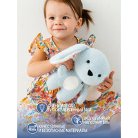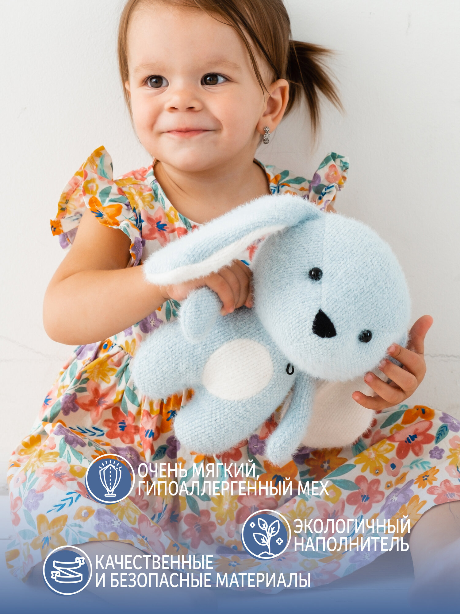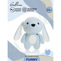 Очаровательный зайка из коллекции Funny мягких игрушек Gulliver покорит вас своей нежностью и миловидностью. У плюшевого зайки светло-голубая шерстка, белые ушки и животик и черный носик и глазки. Игрушка зайка изготовлена из необычного материала, напоминающего вязаную материю с небольшим пушком. Такой плюшевый зайчик прекрасно впишется в интерьер детской комнаты, подарит уют и прекрасное настроение. Благодаря небольшому размеру (23 см в высоту) и легкому весу, плюшевую игрушку зайку можно взять на прогулку или в гости, в поездку или на детский праздник. Игрушка зайчик станет прекрасным подарком на Новый год, День Рождения, 8 марта. Плюшевый заяц упакован в плотную прозрачную брендированную сумочку на кнопках, в которой приятно получить игрушку в качестве подарка. Высота игрушки - 23 см. Игрушку можно стирать в щадящем режиме при температуре не более 30' и низких оборотах. Игрушка изготовлена из безопасных гипоаллергенных материалов. Товар сертифицирован. В коллекции Funny представлены и другие популярные герои - плюшевый мишка, плюшевая лисичка, мягкая игрушка собачка, плюшевый котик и коала.